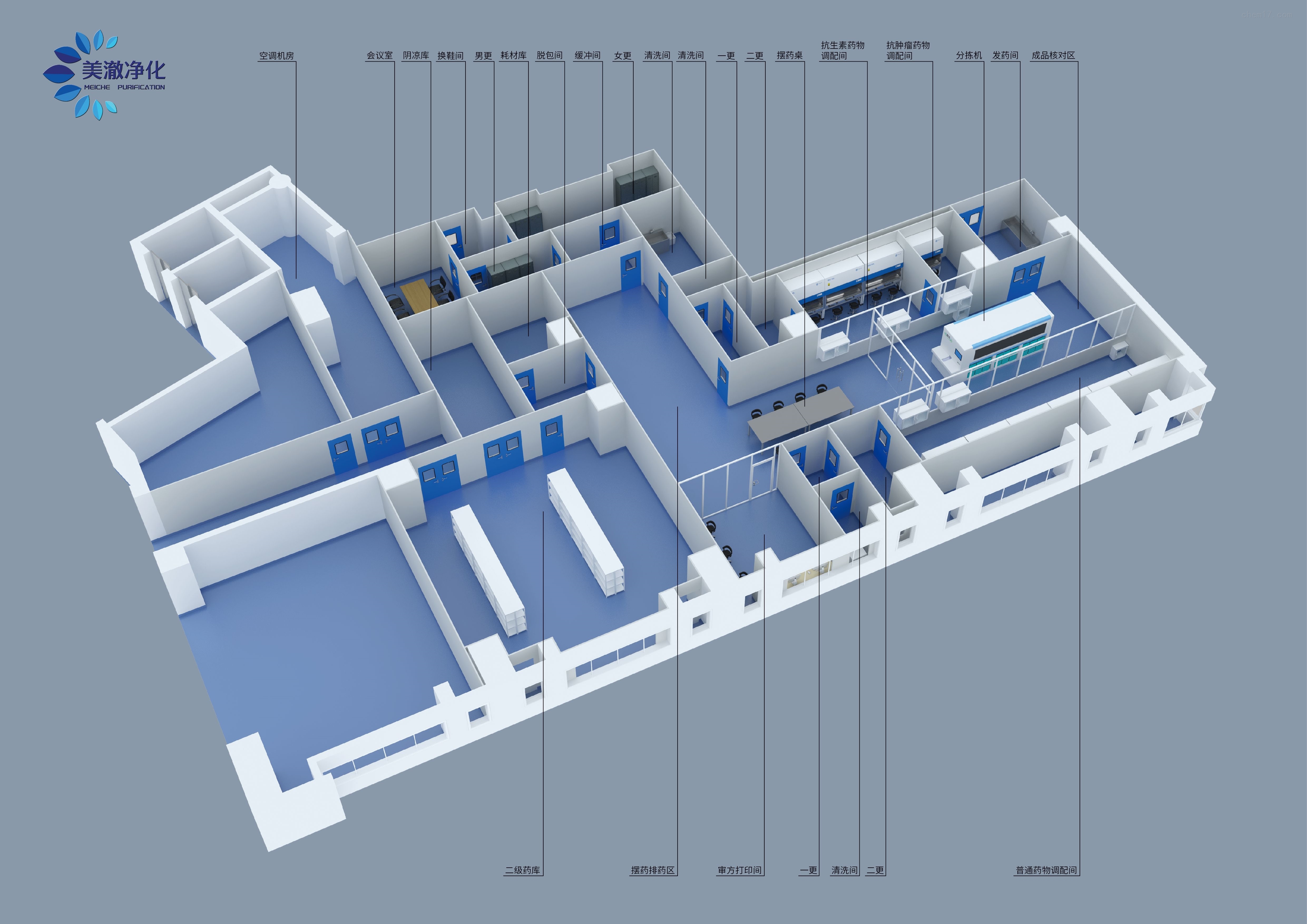 布局设计方面,静配中心需要合理规划仓储区、加工区、办公区等功能区域。仓储区要按照不同的药品类型和特性进行分类管理,保证药品在存放过程中遵守相应的温度要求。加工区需要设置药品配制室、手工包装室等区域,确保药品的准确配制和包装。办公区需要设置管理人员办公室、数据中心和培训教室等区域,以便于管理、监控和培训。